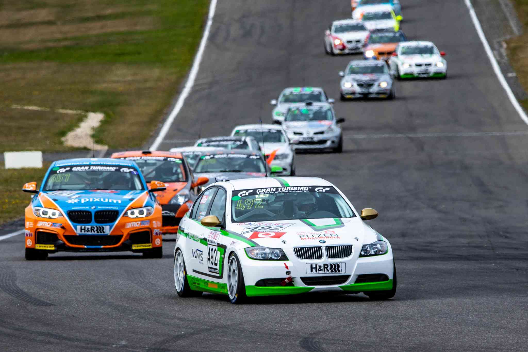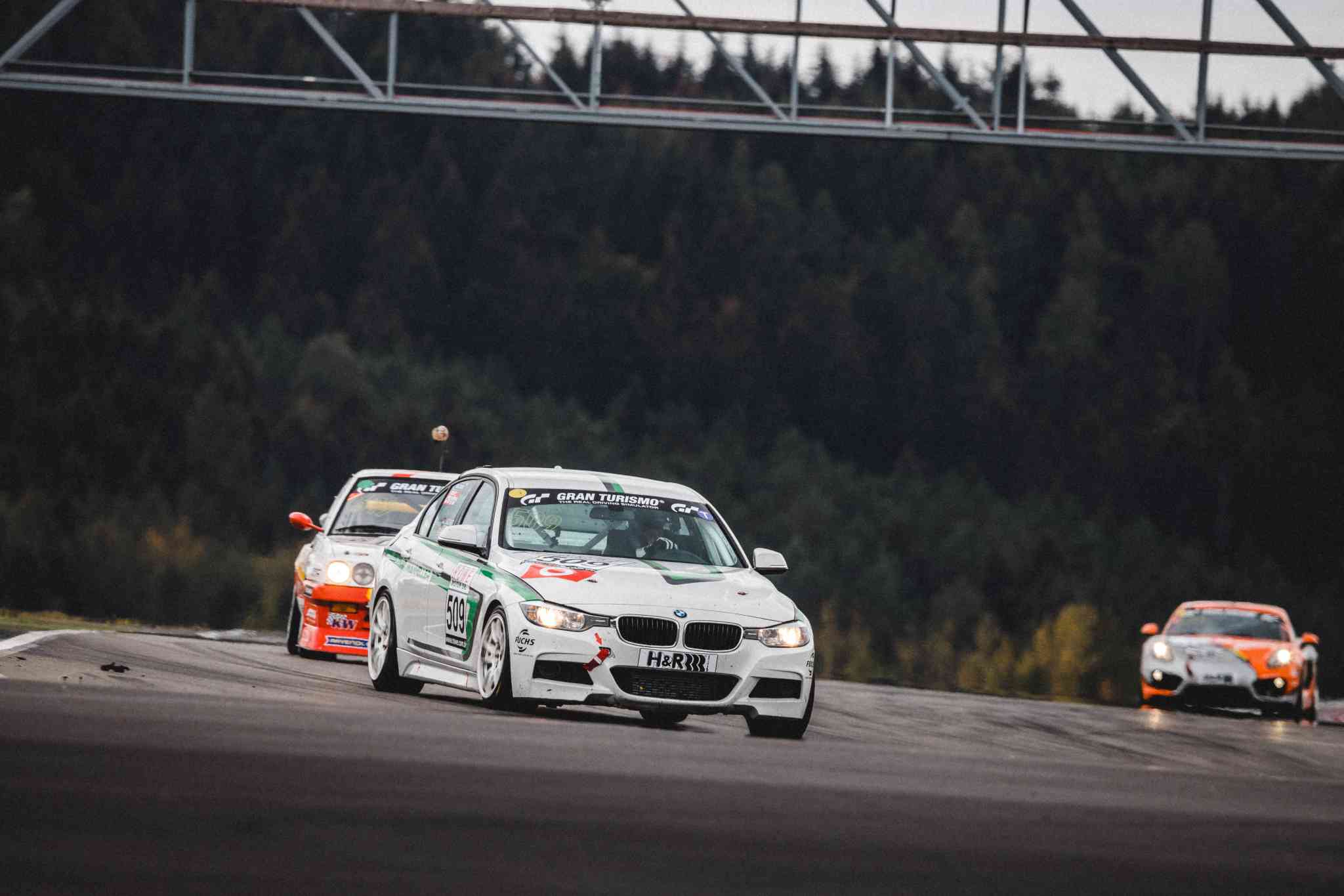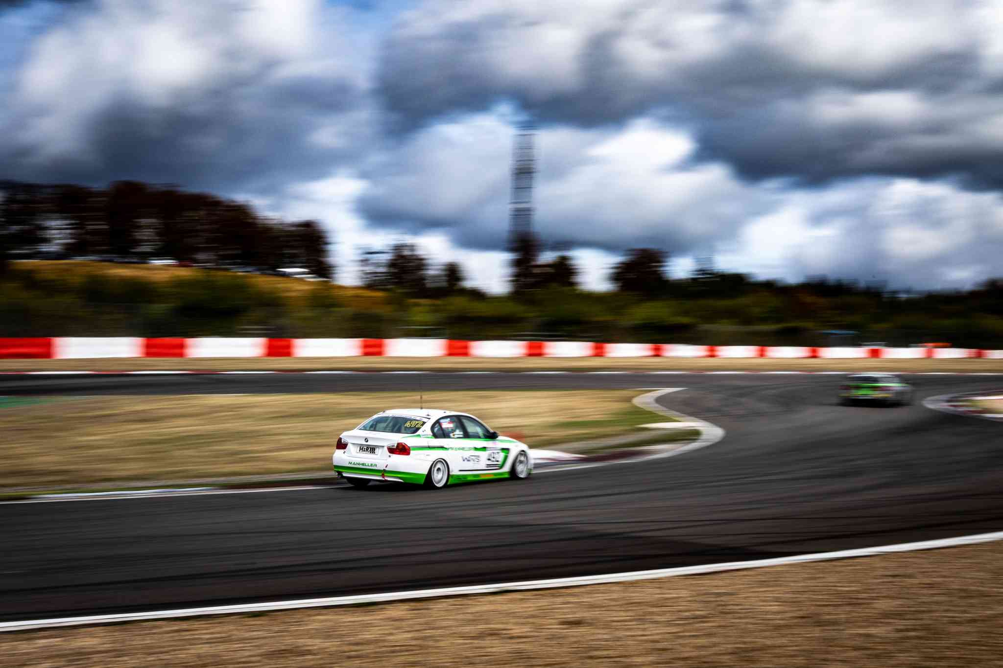 Im Qualifying, das am Morgen bei perfekten Bedingungen stattfand, sortierte sich das Spitzenduo Manheller/Knechtges noch auf dem dritten Startplatz ein. 25 Fahrzeuge nahmen das vierstündige Rennen in der Klasse V4 auf. Nach dem Start konnte sich Manheller schnell nach vorne arbeiten und bog als Führender in die Box ab. Dabei war der Meuspather einige Stundenkilometer zu schnell – 30 Sekunden Zeitstrafe waren die Folge. „So war der Sieg in der Klasse gelaufen, in der V4 geht es einfach zu knapp zu“, so Manheller. Auch der zweite Platz musste nun wieder zurückerkämpft werden, was bis zum Rennende gelang. Das Schwesterfahrzeug in der V4 konnte nach einem guten Start die Position im Mittelfeld halten und sich bis zum Schluss bis auf dem siebten Platz nach vorne arbeiten, was für das Fahrertrio auch drei Pokale bedeutete. In der SP6 blieben die Fahrer auf einer konservativeren Strategie – auch, um den neu aufgebauten Motor zu testen. „Wir hatten heute ein großartiges Rennen und viel Spaß auf der Strecke, so soll es sein“, resümierte Kurt Strube. Der VT2-BMW startete seine Klasse von der Pole Position, konnte den Speed aber noch nicht über die volle Distanz mitgehen. „Das Auto ist ja gerade erst vier Rennen alt, wir müssen noch einiges an Erfahrung sammeln“, sagte Jens Noeske.